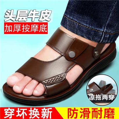 香珀 凉鞋男真皮夏季新品男士沙滩鞋头层牛皮凉拖 |