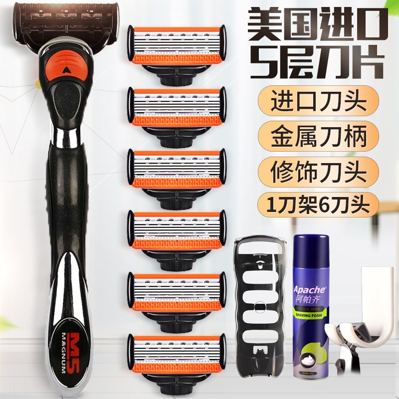 阿帕齐美国进口5层刀片手动剃须刀手动刮胡刀 剃须刀片、架 |