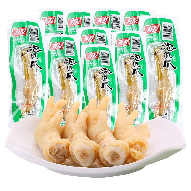有友 泡椒凤爪 单个装 休闲追剧办公室小零食 经典小吃 肉干肉脯 山椒味280g |
