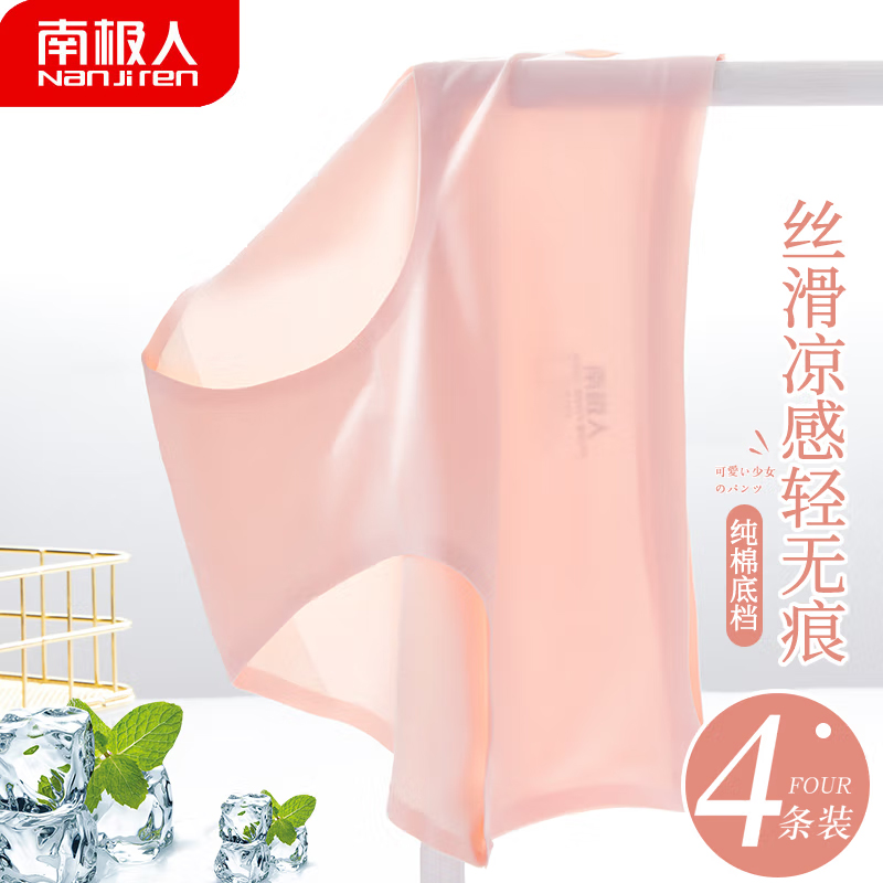 南极人冰丝女士内裤女一片式无痕顺滑丝感棉质底档中腰简约无痕三角内裤短裤 |