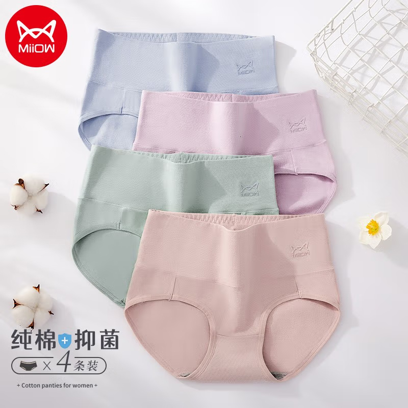 猫人女士内裤女高腰内裤女纯棉裆收腹裤抑菌大码无痕女式内裤三角短裤头女 4条装 |