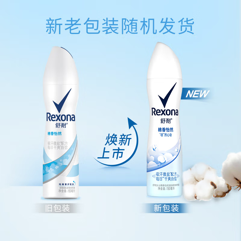 舒耐(REXONA)爽身香体止汗喷雾 女士 棉香怡然150ml 干爽净味香体止汗露 (新老包装随机发货) |