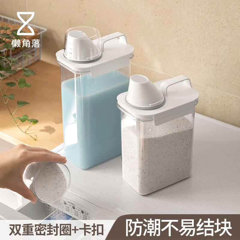 懒角落 收纳盒带出料口收纳罐密封洗衣粉罐洗衣液储物罐带盖收纳盒 1800mL |