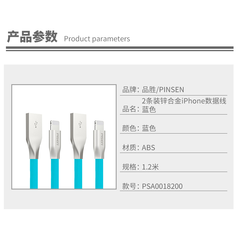 2条装锌合金iPhone数据线蓝色【ABS/蓝色】 |