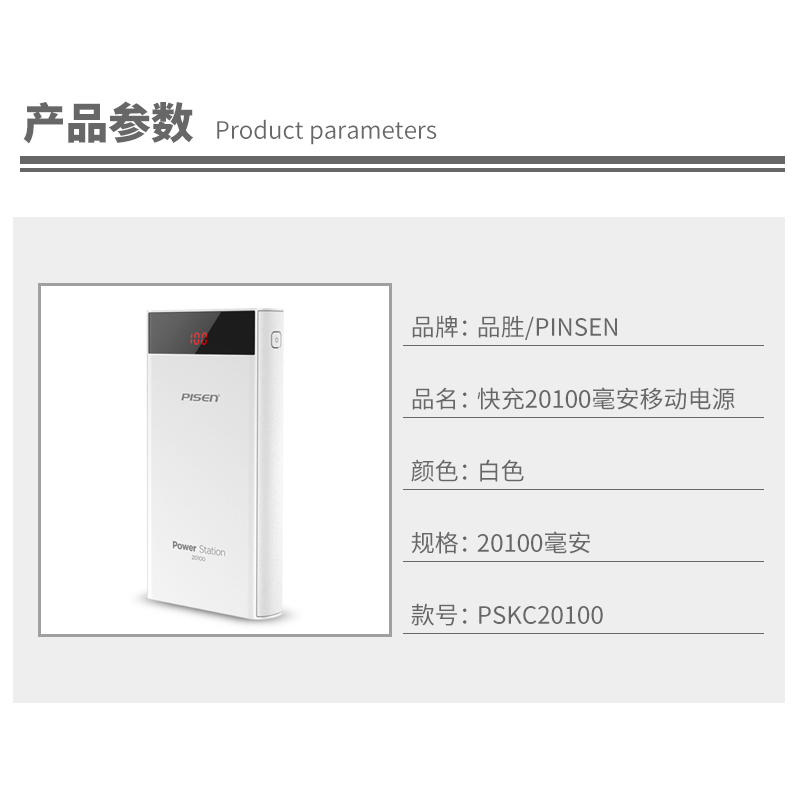 快充2万毫安移动电源【ABS/白色】 |