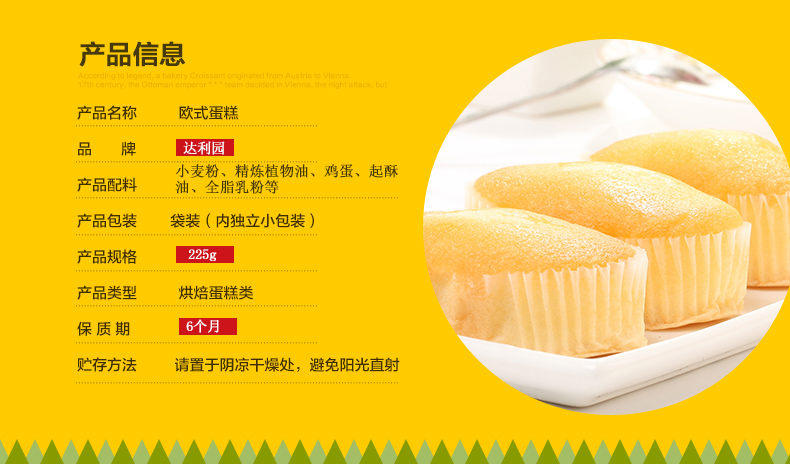 达利园欧式蛋糕鸡蛋味225g(内含8个独立内包装) |