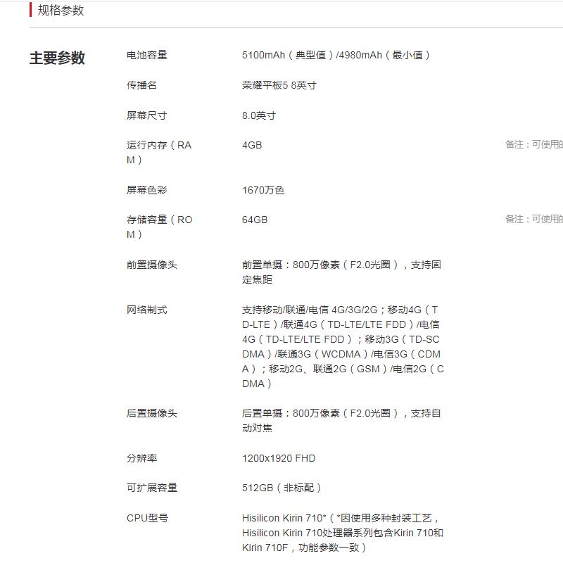 荣耀平板5 8英寸 4GB+64GB 全网通高配版 冰川蓝【其他/冰川蓝】 |