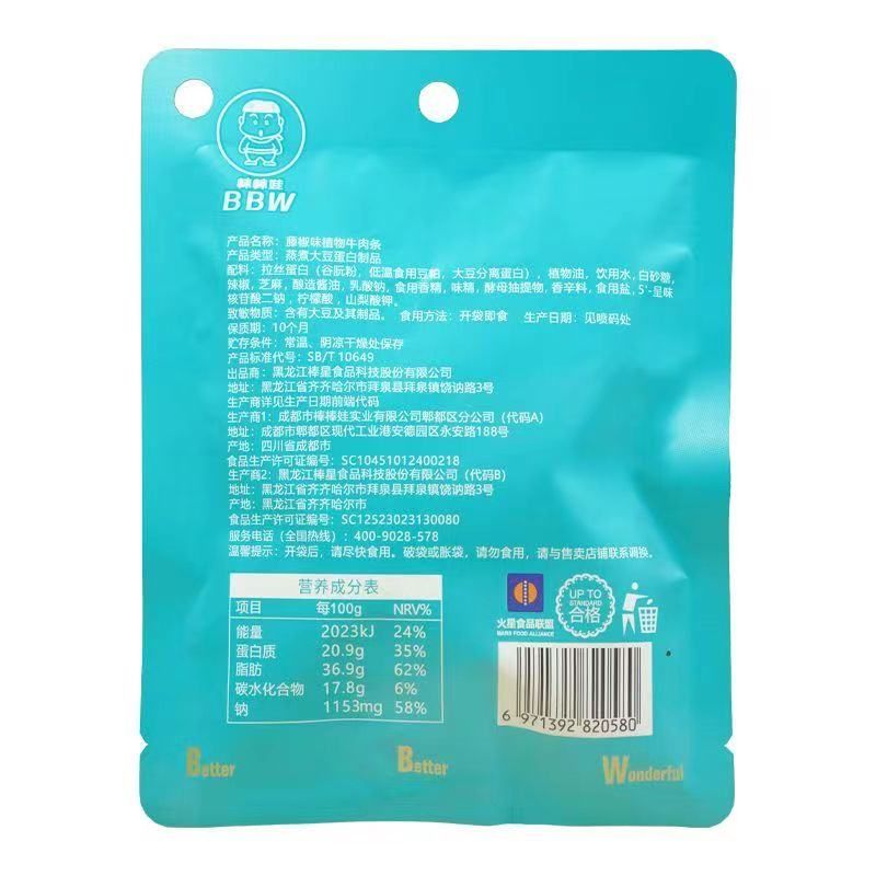 棒棒娃植物牛肉条爽口藤椒味55g |