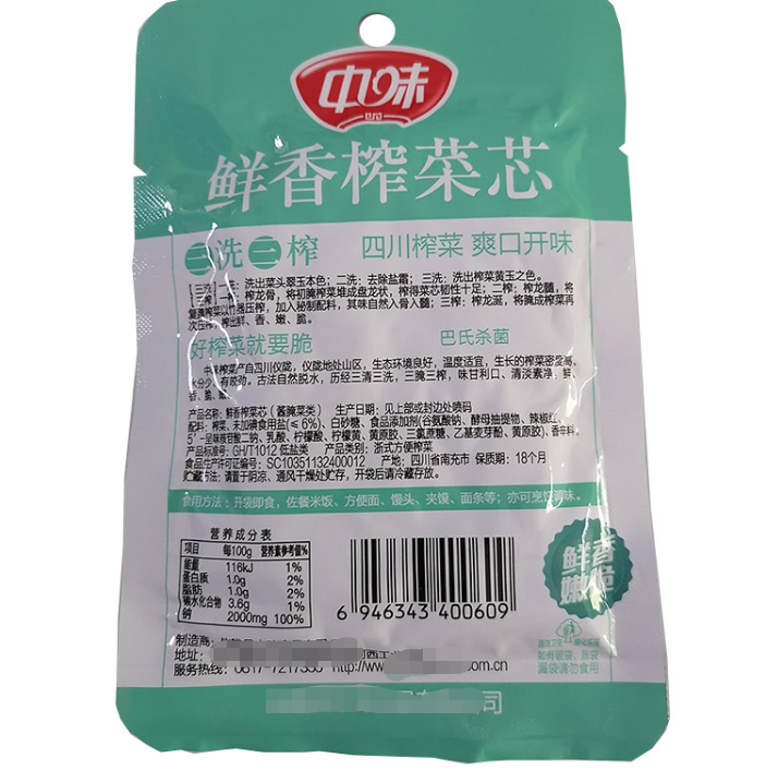 中味鲜香榨菜芯60克 |