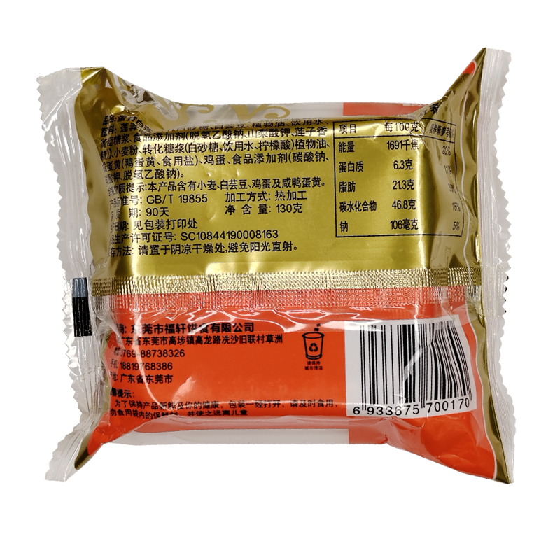 福轩蛋黄白莲蓉味月饼130g |