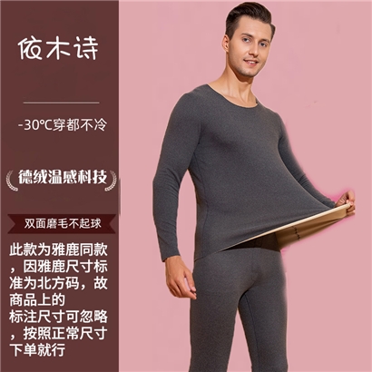 男士德绒无痕双面磨毛发热套装灰色 |