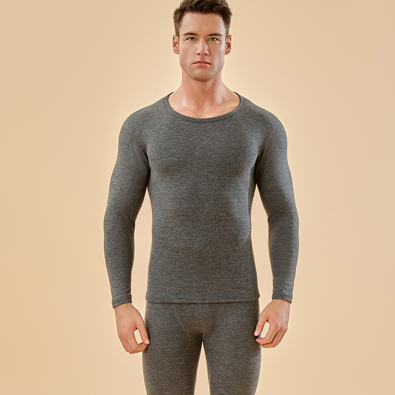 加绒山羊绒桑蚕丝保暖衣套装灰色 |