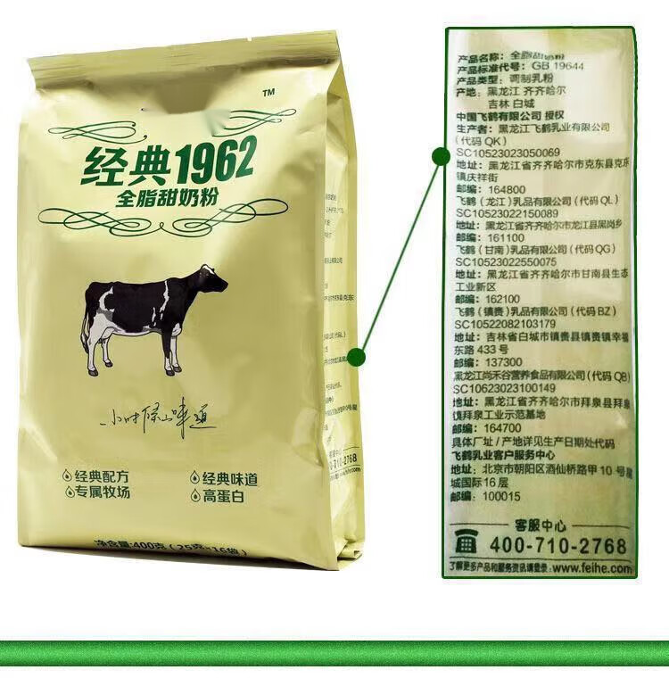 飞鹤牧场全脂甜奶粉400g(25gx16) |