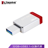 金士顿(Kingston)32GB USB3.1 U盘 DT50 红色 金属外壳 无盖设计