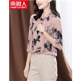 南极人 衬衫女2020夏季新款女装韩版时尚文艺复古七分袖衬衣蝴蝶结水墨印花雪纺小衫上衣潮 N4-NRA25-3001-粉色 XL