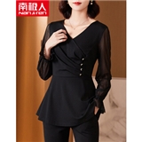 南极人 衬衫女长袖2020夏季新款女装韩版时尚显瘦减龄衬衣洋气设计感上衣网纱拼接V领雪纺小衫 N4-GDB405-6886-黑色 M