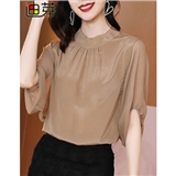 颜域薄荷绿圆领雪纺衫女2020新款秋装减龄宽松显瘦七分袖气质上衣 浅绿 M