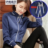 伊雅露莎长袖衬衣女商务通勤棉质职业装衬衫防走光暗扣大学生面试工作服923-1 单件深蓝衬衫 L