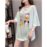 芊蕊t恤女短袖2020夏季新款韩版宽松印花字母中长款大码女装胖MM半袖打底上衣服 2389杏色 M