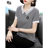 【精选好货】晞薇条纹T恤女短袖POLO领2020夏装新款中年妈妈体恤棉上衣宽松百搭打底衫夏 白色 M