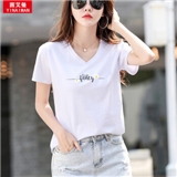 茵艾曼t恤女短袖宽松版2020夏季新款百搭韩版显瘦纯棉T恤女V领时尚网红潮小雏菊半袖体恤 7007V领白色 L《105-115斤》
