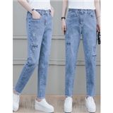 芳帛休闲牛仔裤女高腰宽松显瘦2020夏季新款韩版女裤九分直筒小脚裤潮 蓝色 L