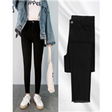 右昀 紧身牛仔裤女裤子夏季薄款2020新款黑色高腰春秋打底裤女外穿修身九分显瘦网红百搭破洞铅笔小脚裤 常规款-黑色 L【适合105-115斤】