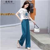 信和祥休闲裤女雪纺套装女夏装2020新款气质女神范衣服洋气减龄休闲两件套阔腿裤 蓝色 L