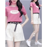 欧芙伦短裤女套装2020夏季新款女装短袖t恤休闲时尚洋气减龄小个子显高两件套9697 粉色套装 M