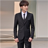 vocaco西服套装男修身三件套青年正装上班面试职业装学生青少年韩版潮流黑色新郎结婚礼服外套商务休闲 两粒扣黑色西服+西裤+白衬衫+领带 L/106-119斤