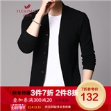 富贵鸟春秋男士针织衫开衫休闲V领薄款毛衣中年韩版修身打底外套男父亲节衣服 黑色 170/M