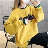 萱蓝卫衣女纯棉ins网红港风复古潮2020夏季双子领百搭假两件印花字母oversize外套女9747 黄色 均码【建议88斤-135斤】