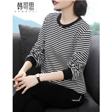 【精选好货】韩可思妈妈运动套装女洋气春秋装条纹休闲2020新款韩版气质四十岁宽松百搭中年长袖两件套 黑色上衣 请拍准确尺码或咨询客服