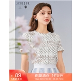 三彩2020夏季新款圆领短款直筒波点蕾丝印花单排扣短袖衬衫女 白色 155/80A/S