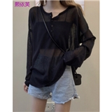 熙依芙针织衫女宽松外穿黑色防晒上衣女2020春夏韩版新款薄款套头洋气针织打底衫 黑色 均码