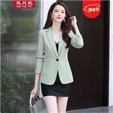 花月斐小西装女2020秋季新款西服时尚一粒扣个性长袖OL通勤西服小外套女005 绿色 L