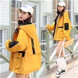 轩薇奴短外套女2020秋季新款女装韩版时尚大码宽松显瘦连帽工装风衣港味ins棒球服女X2181 黄色 M