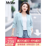 MsShe大码夏装2020新款胖mm挺括透气七分袖青果领帅气小西服外套 天空蓝色现货 2XL