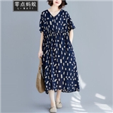 零点蚂蚁2020新款加肥加大码女装胖mm夏装洋气休闲时尚韩版v领收腰遮肉宽松连衣裙胖人女装胖妹妹裙子 图片色 均码【110-200斤】