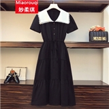 妙柔琪 胖妹妹夏装新款韩版加肥加大码女装微胖mm拼接宽松遮肚子显瘦连衣裙200斤胖人女装 黑色 XXXL(建议150-175斤左右)