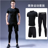 赢虎 健身服男跑步运动套装高弹速干衣篮球训练服弹力短袖短裤夏季套装 科幻三件套 XL(130-145)斤