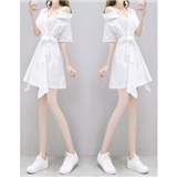 予蒙 一字肩修身吊带连衣裙女夏季2020新款韩版流行小个子显瘦女装气质超仙名媛夏装衬衫裙子 白色 M(建议100-110斤)