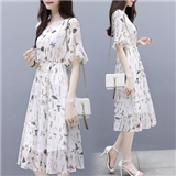 巷前 连衣裙2020夏季新款女装流行轻熟风温柔气质收腰显瘦碎花仙女超仙连衣裙子中长款 白色 M