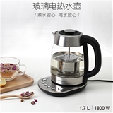 电热水壶透明玻璃蓝光数字温控家用煮茶开水烧水壶1.7L【玻璃/黑色】
