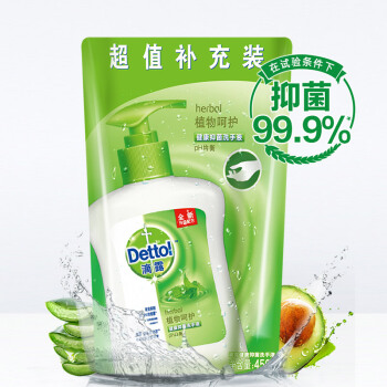 滴露Dettol健康洗手液植物呵护450g补充袋装 儿童洗手液