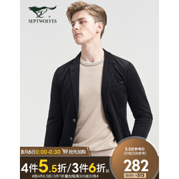 七匹狼西装西服新品男士商务休闲灯芯绒休闲单西 001(黑色) 190/104A/XXXXL