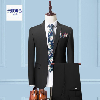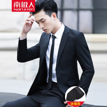 【正常发货】南极人西服套装男士外套青年韩版修身新郎结婚商务婚礼休闲职业装正装小西装男 二扣黑色西服+西裤.. XL