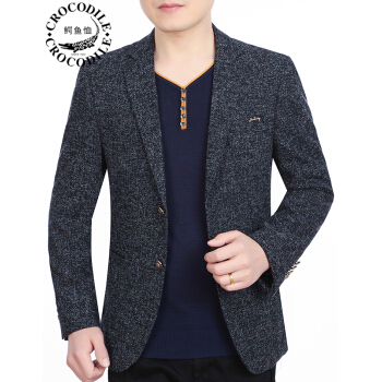 鳄鱼恤西服男2020秋季新款中年男士商务休闲小西装外套韩版修身单西爸爸装秋冬上衣 黑灰9833 170/M