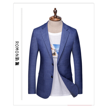 Romon/罗蒙休闲西服男士韩版修身小西装外套男士春夏薄款青中年纯色商务免烫单西男装 036蓝色 175