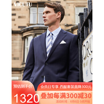 威可多VICUTU男士套西服上装纯羊毛进口面料商务休闲西装外套男VBS88312395 藏蓝色 185/104B